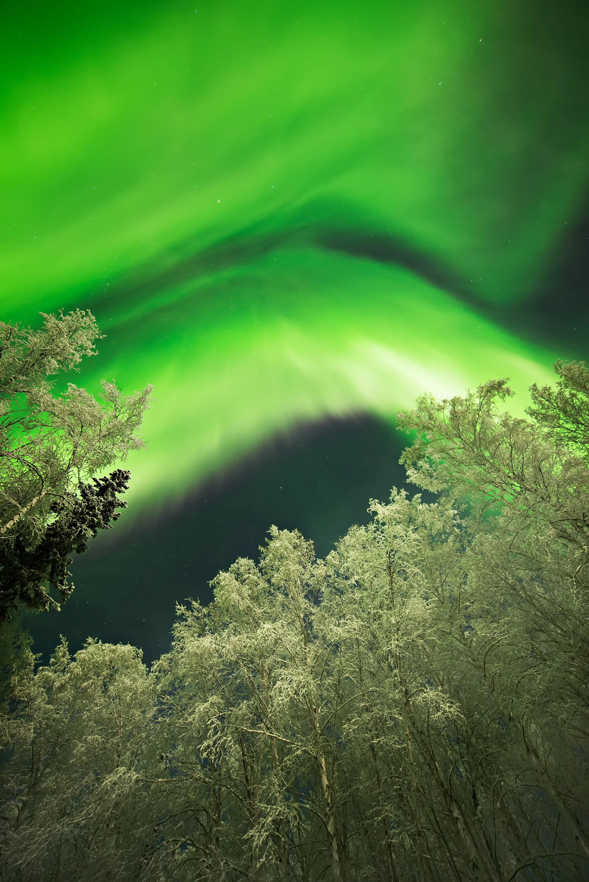 In each photograph, I strive to transport the viewer to the remote, pristine landscapes where these radiant spectacles unfold, feeling the way I did when I witnessed them myself. The frigid silence of the cold Alaskan nights, the crisp air, and the beautiful birch trees become integral elements in my compositions, serving as a reminder of how small we are compared to the enormous wonders of the world.